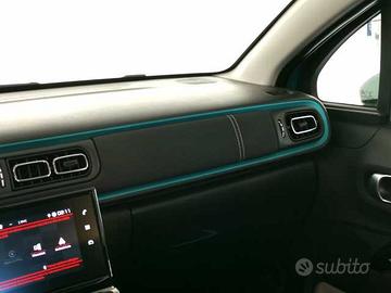Interni in tessuto Hello Cerchi 3D, Tetto in tinta carrozzeria, Vernice metallizzata Spring Blue, Alzavetri posteriori elettrici, Airbag frontali, laterali e a tendina, Airbump, Computer di bordo, Conchiglie dei retrovisori Onyx Black, Dettaglio Airbump e finitura montante posteriore Opal White, Fari Citroën LED diurni, Fari posteriori effetto 3D, Finitura montante centrale Nero Lucido se presente VD09 (vetri posteriori oscurati), Finitura montante posteriore Opal White (con JD04), Finitura pannelli porte in tessuto con cinghie "valigeria", Fissaggi Isofix sui sedili posteriori, Hill Assist, Interni in tessuto Mica - Grey, Maniglie esterne in tinta carrozzeria, Pack Color Black, Pack Visibilità, Plafoniera con luci di lettura, Plancia nero brillante con profilo "Satin", Presa 12V anteriore, Profili passaruota di colore nero, Profilo fendinebbia Onyx Black, Radio MP3 DAB con comandi al volante e 6 altoparlanti, Bluetooth, presa USB, Rilevatore bassa pressione pneumatici, Spia cinture non allacciate passeggeri posteriori, TouchPad 7'' DAB con funzione Mirror Screen, ABS + Rip. el. di frenata + Aiuto frenata d'emergenza, 3 appoggiatesta posteriori, ASL Video -Avviso di superamento involontario delle linee di carreggiata, Cambio manuale a 5 marce, Chiusura centralizzata con telecomando, Climatizzatore automatico con filtro antipolline a carboni attivi, Regolatore e limitatore di velocità, ESP, Citroën Eco LED, Fari fendinebbia, Retrovisori riscaldabili e regolabili elettricamente, Retrovisori ripiegabili elettricamente, Riconoscimento dei limiti di velocità, Sedile conducente regolabile in altezza, Sedile posteriore frazionabile 2/3 - 1/3, Coffee Break Alert: rilevatore di stanchezza, Alzacristalli elettrici anteriori sequenziali, Volante regolabile in altezza e profondità