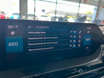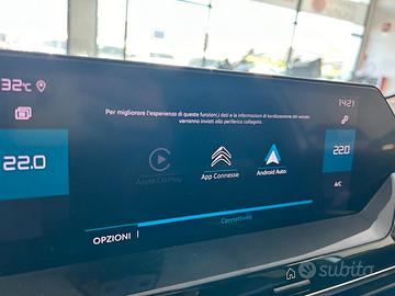 ACCESSORI: cerchi in lega 18'' Aeroblade diamantati, spoyler post.re, listelli cromati, vetri post.ri oscurati, fari fendinebbia, luci diurne e proiettori direzionali Citroen Led Vision, rilevatore ostacolI post.re, retrov. esterni regolab. e ripieg. elettr., climatizzatore autom. bizona, modulo mp3 con usb, display touchscreen 10'' HD (con Radio DAB, sistema di navigazione, Mirror Screen e Visiopark 180), Head Up Display, Digital Cockpit, sensore luci e pioggia, volante sportivo in pelle multif., Cruise Control (regolat. e limit. velocità), airbags, abs afu ref, esp, Active Safety Brake, Lane Keeping Assist, Traffic sign recognition, Driver Attention Allert, keyless entry&start, 4 vetri elettr., sedili in tessuto/TEP Urban Grey.