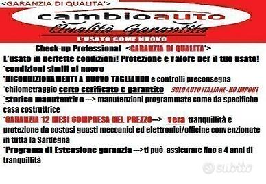 P R E Z Z O C H I A R O < --> ACQUISTO SICURO < --> G A R A N Z I A Contatti telefonici e whatsApp: 0 7 9 2 6 7 8 0 5 3 - 3 9 3 8 5 0 7 7 7 5 - 3 9 3 3 3 7 0 8 6 4 NUMEROSE ALTRE AUTO PRONTA CONSEGNA PUOI VISIONARE TUTTE LE NOSTRE OFFERTE DISPONIBILI CLICCANDO ALLO ****SHOP**** IN FONDO ALLA PAGINA VISITA LA NOSTRA PAGINA FB @cambioautosassari presso: CAMBIO AUTO ZONA INDUSTRIALE PREDDA NIEDDA NORD STRADA 1 - SASSARI USATO CERTIFICATO GARANTITO A NORMA DI LEGGE IVA DETRAIBILE GARANZIA 12 MESI COMPRESA NEL PREZZO possibilità estensione garanzia a 36 mesi FINANZIABILE 0 – 84 MESI IVA AGEVOLATA L. 104 NOTE : Vettura COME NUOVA Meccanica come nuova. Esterni ed interni COME NUOVI Storia manutentiva regolare e nota Nessun sinistro e zero sorprese Cosa include il prezzo Garanzia 1 anno con soccorso stradale Check up tecnico - ricondizionamenti a nuovo - tagliando Lavaggio ed igienizzazione professionale Cosa non è incluso? Passaggio di proprietà Airbag laterali Chiusura centralizzata Fendinebbia Airbag per la testa Isofix Airbag guida Airbag passeggero Appoggiatesta posteriori Climatizzatore Vetri elettrici anteriori Volante regolabile Sensore luci Cambio automatico Controllo automatico velocità Retrovisori elettrici Sedile guida regolabile in altezza Servosterzo Tergilunotto Vetri elettrici posteriori Sensore pioggia Bracciolo sedili anteriori Volante multifunzione Tempomat Autoradio Bluetooth Computer di bordo USB Navigatore satellitare Touch screen Vivavoce Filtro anti particolato Cerchi in lega Sensori di parcheggio posteriori