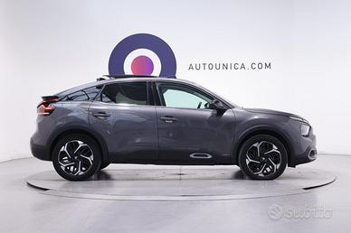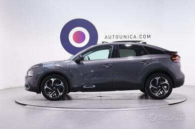 CITROEN C4 PureTech 130 S&S Max, un modello del 2024 che si distingue per il suo design da crossover fastback e un allestimento ricco di tecnologia e comfort. Questa versione è equipaggiata con il motore benzina PureTech da 130 CV, noto per la sua efficienza grazie al sistema Stop&Start (S&S). L'esterno della C4 Max è caratterizzato da un look moderno con cerchi in lega, fari full-LED, luci diurne a LED e fendinebbia, che garantiscono un'ottima visibilità e un impatto estetico deciso. Per chi ama la luce naturale, la vettura offre un suggestivo tetto panoramico in cristallo che contribuisce a creare un a