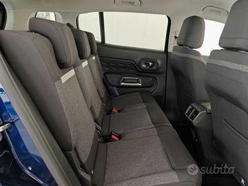 Vernice metallizzata Eclipse Blue, ABS + REF + AFU, Airbag conducente, passeggero, laterali, a tendina, Alzacristalli elettrici e sequenziali anteriori e posteriori, Controllo di stabilità ESC con sistema antipattinamento ASR, Fari posteriori a Led con effetto 3D, Firma luminosa diurna a LED con indicatori di direzione a LED, Fissaggi isofix sul sedile passeggero anteriore e sui due sedili laterali posteriori, Fondo bagagliaio a scomparsa, Freno di stazionamento elettrico, Interni in tessuto nero e grigio - Silica Grey, My Citroen Assist (Citroen Connect Box - include servizi Connect ONE per un periodo di 10 anni), My Citroen Drive Plus - Touchscreen da 10'' con navigazione, My Citroen Play, Pack Color Glossy Black (inserti Airbump e inserti frontali), Paraurti posteriore con doppia cannula cromata, Presa da 12V dietro la console centrale, Profili passaruota Nero Matt, Retrovisore interno standard, Rilevatore bassa pressione pneumatici, Safety Pack, Sensori di parcheggio anteriori, Servizi Connessi PLUS (Gratuito per un periodo di prova di 12 mesi), Vetri e lunotto posteriori oscurati, Kit Vivavoce Bluetooth con 3 prese USB, Cambio automatico a 8 marce, Cerchi in lega 18" Swirl Non Diamantati, Climatizzatore automatico bi-zona, Mirror Screen (Apple CarPlay & Android Auto), Fari LED con calandra nero lucido ed animazione a "pianoforte", Keyless Entry&Start, Sistema audio digitale con doppio sintonizzatore RDS MP3 Radio DAB, Retrovisori riscaldabili elettricamente, Retrovisori esterni ripiegabili elettricamente con illuminazione di benvenuto, Sedili anteriori regolabili in altezza, 3 Sedili posteriori indipendenti, scorrevoli, inclinabili e ripiegabili, Accensione automatica dei fari, Accensione automatica dei fari, Tergicristallo automatico con sensore pioggia e funzione "Magic Wash", Sensori di parcheggio posteriori, Sospensioni Citroën Advanced Comfort, Telecamera di retromarcia (con Top Rear Vision), Volante in pelle regolabile in altezza e profondità