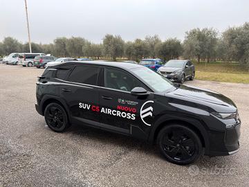 NUOVA CITROEN C5 AirCross Hybrid 145 CV e-DCS6 Max Nostra vettura Aziendale Dimostrativa ESTERNI: • Fari Anteriori Citroën LED MATRIX • Finestrini posteriori oscurati • Paraurti anteriore e posteriore nero lucido INTERNI: • Volante riscaldato • Head Up Display • Pedali e poggiapiedi in alluminio • Clean Cabin (sistema di qualità dell'aria in abitacolo) • Illuminazione ambientale estesa a 8 colori • Sistema di navigazione 3D con 4 USB • Ricarica wireless per smartphone • Panca posteriore con schienale reclinabile e bracciolo centrale posteriore • Specchietto retrovisore interno elettrocromatico • Bocchette di aereazione posteriori COMFORT: • Portellone motorizzato • Sensori di parcheggio anteriori e posteriori con VisioPark 360° • Drive Assist 2.0 • Specchietti laterali ripiegabili elettricamente con funzione di sbrinamento, illuminazione di benvenuto e funzione riposizionamento in retromarcia • Keyless Entry & Start • Sensori di parcheggio anteriori, posteriori e telecamera posteriore a 180° • Specchietti laterali ripiegabili elettricamente con funzione di sbrinamento e illuminazione di benvenuto. ADATTAMENTO ALLA VELOCITA' RACCOMANDATA: Il sistema assiste il guidatore durante il cambio di corsia e si attiva quando il conducente accende l'indicatore di direzione se le condizioni necessarie sono soddisfatte inizia il cambio di corsia semi-automatico. il sistema guida il veicolo nella corsia desiderata attraverso piccoli input di sterzo per posizionarlo nella corsia di destinazione. PACCHETTO ADAS 2.0: Adattamento della Velocità Raccomandata Il sistema rileva il prossimo segnale di limite di velocità, lo visualizza in background e propone questa nuova velocità come obiettivo per l’Adaptive Cruise Control. Quando viene recepito un nuovo limite di velocità velocità e si accetta la velocità proposta. Se la velocità target è inferiore a quella precedente, il veicolo rallenterà fino alla nuova velocità al segnale. - Se la vel