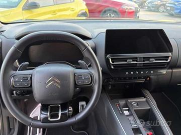 Airbag frontali, Badge PHEV, Barre al tetto finitura Glossy Black con inserto nero Matt, Caricatore OBC (On Board Charger) 3 kW monofase, Cavo di ricarica T2 8A per presa domestica, Cavo di ricarica T3 monofase 7, 4 kW con custodia dedicata, Citroen Connect Box, Computer di bordo 3, 5' con dettagli cromati, Controllo di stabilità ESP con sistema antipattinamento ASR, Cruscotto digitale 12'' (personalizzabile in 3 colori), Fari posteriori a Led con effetto 3D, Fissaggi isofix sul sedile passeggero anteriore e sui due sedili laterali posteriori, Freno di stazionamento elettrico, Inserti Dark Chrome negli Airbump e nelle prese d'aria, Interni in Alcantara nero /Tep Nero - Urban Black, Kit di riparazione pneumatici, Pack Color Dark Chrome (inserti Airbump e inserti frontali), Pedaliera e poggiapiede in alluminio, Piastra di protezione anteriore in Alluminio, Presa 12V sulla consolle centrale e nel bagagliaio, Profili passaruota Nero Matt, Profilo prese d'aria anteriori e Airbump Nero Lucido, Radio DAB + 2 prese USB sulla console centrale (A-Type) e 1 in seconda fila, Scarichi cromati, Sedile conducente con regolazione lombare, Sedili Advanced Comfort, Selettore modalità di guida "e-Toggle", Sensori di parcheggio anteriori, Soglie porte in acciaio Inox, Touch screen 10", Vetri anteriori stratificati, Vetri posteriori oscurati, Bluetooth, Cambio automatico a 8 marce, Cerchi in lega 18" Pulsar Diamantati, Climatizzatore automatico bizona, Mirror Screen (Apple CarPlay & Android Auto), Regolatore di velocità Attivo con funzione Stop & Go, Fari LED con calandra nero lucido ed animazione a "pianoforte", Fari fendinebbia con funzione Cornering Light, Keyless Entry&Start, Citroën Connect Nav DAB con Touch Screen 10'', Retrovisori riscaldabili elettricamente, Accensione automatica dei fari, Tergicristallo automatico con sensore pioggia e funzione "Magic Wash", Sensori di parcheggio posteriori, Sospensioni PHC (Progressive Hydraulic Cushions), Retrocamera Vision 180°, Il p