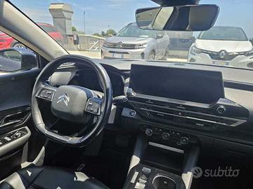 2 fissaggi ISOFIX sui sedili laterali posteriori, Airbag frontali, laterali e a tendina, Alzacristalli elettrici anteriori e posteriori, Ambient Light, Bracciolo centrale posteriore con botola passaggio sci, Cavo di ricarica T3 monofase 7, 4 kW con custodia dedicata, Citroën Connect Box con Citroën Connect Nav, Comandi del cambio al volante, Cruscotto digitale 7" TFT con back lighting, Decorazione in terza luce effetto veneziana, Decori piano di carico bagagliaio, Fari posteriori a Led, Freno di stazionamento elettrico, Funzione Follow me home, Mirror Screen Wireless e connettività Bluetooth, Pack Drive Assist, Pack Safety, Paraurti posteriore con dettagli Satin-Chrome, Pedaliera e poggiapiede in alluminio, Plafoniera anteriore e posteriore, Plancia di bordo Mistral Black con finitura Wood effetto Chevron, Portellone posteriore motorizzato con funzione Hands-Free Tailgate, Presa 12V anteriore, Presa USB Type-C anteriore e posteriore, Retrovisore interno fotocromatico Frameless, Retrovisori esterni Glossy Black, Rilevatore bassa pressione pneumatici con Kit riparazione pneumatici, Sedile conducente con funzione Memo, Sedili anteriori riscaldabili, Sedili Citroen Advanced Comfort, Selettore modalità di guida, Soglia bagagliaio in Acciaio Inox, Soglie porte in acciaio Inox, Sospensione Citroen Advanced Comfort, Supporto retrovisori Glossy Black, Tappetini anteriori e posteriori, Tetto in tinta carrozzeria, Touch Pad 12", Vetri anteriori e posteriori acustici stratificati, Volante riscaldabile, Cambio automatico a 8 marce, Cerchi in lega 19" Aero X Black Diamond, Climatizzatore automatico bi-zona, Ricarica dello smartphone wireless. Il prezzo si intende escluso passaggio di proprietà e con finanziamento Stellantis financial services.
