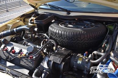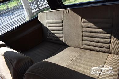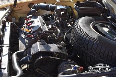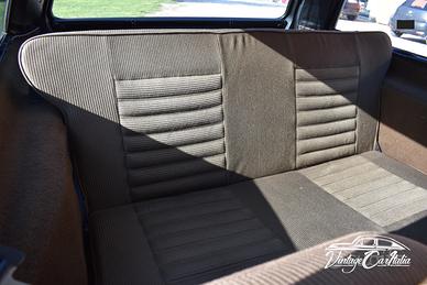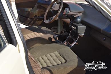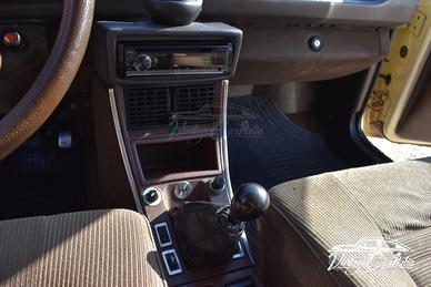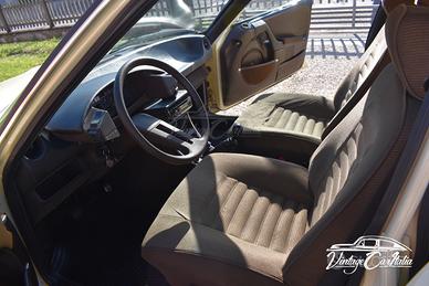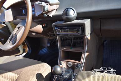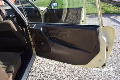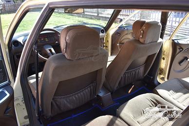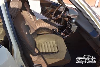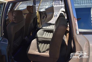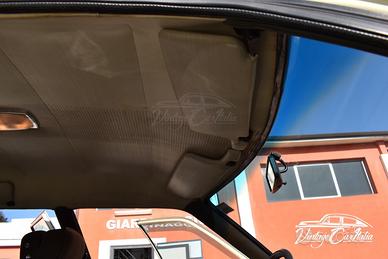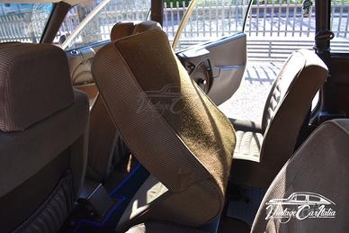 Gli accoglienti interni rivestiti in tessuto e le plastiche del cruscotto e fianchetti porta sono completamente originali e conservati in modo esemplare, solamente una leggera crepa sulla finitura superiore del lato guida, aria condizionata.