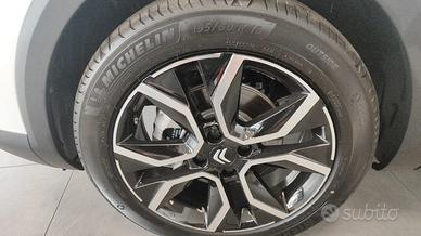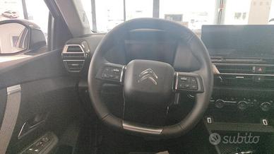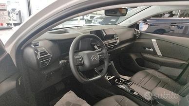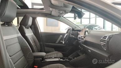 2 prese USB in prima fila (1 Type C + 1 Type A) + 2 prese USB in seconda fila (1 Type C + 1 Type A) - ABS + Aiuto alla frenata d'emergenza (AFU)+ ASR + ESP - Accensione automatica dei fari anabbaglianti - Airbag frontali, laterali e a tendina - Alzacristalli elettrici e sequenziali anteriori e posteriori - Assistenza alla partenza in salita - Botola centrale seconda fila per passaggio sci - Calotte degli specchietti retrovisori esterni Glossy Black - Cambio automatico - Caricatore OBC 7,4 kW monofase - Cassetto cruscotto - Cavo di ricarica trifase Mode 3 per presa di ricarica T2, lunghezza 6 metri - Cerchi in lega CROSSLIGHT DIAMANTATI da 18" - Citroën Smart Pad Support - Climatizzatore automatico bizona con pompa di calore - Color Head Up Display - Consolle centrale alta con bracciolo anteriore e 2 portabicchieri - Decoro Blu sui pannelli delle porte interne - Diffusore posteriore Gloss Black - Fari anteriori a LED con firma luminosa a «V» - Fari fendinebbia a LED con funzione Cornering - Freno di stazionamento elettrico automatico - Illuminazione sotto gli specchietti retrovisori - Interni in TEP/Tessuto «Metropolita Grey» - Keyless Access & Start - Kit di riparazione pneumatici - Kit vivavoce Bluetooth - Maniglie delle portiere in tinta