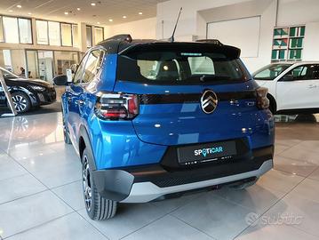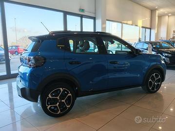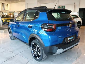 Contattaci al numero e fissa un appuntamento con i nostri consulenti commerciali! Optional: - Sedili posteriori monoblocco abbattibili, non indipendenti - Citroen head-up display - Chiusura centralizzata con pulsante di sicurezza e visualizzazione permanente delle porte chiuse - Calotte degli specchietti retrovisori esterni in tinta in massa - Rivestimento passaruota matt black - Rilevamento di gonfiaggio insufficiente - Pack safety - Spia cintura di sicurezza conducente e passeggeri - Barre al tetto in colore nero Lucido - Specchietto retrovisore laterale regolabile elettricamente con sbrinatore - 1 presa USB-C sul cruscotto + 2 prese USB-C nella seconda fila (ricarica rapida 3A) - Cerchi con copertura integrale azurite da 17" - Sedile posteriore abbattibile 2/3 - 1/3 - Alzacristalli elettrici anteriori con abbassamento automatico per il conducente e abbassamento automatico per il passeggero, alzacristalli posteriori manuali - ABS - Proiettori anteriori alogeni con firma luminosa a led - Maniglie esterne ed interne delle porte nero opaco - My Citroen drive con schermo centrale da 10" - Airbag laterali - Volante regolabile in altezza e profondità - Specchietti esterni elettrici - Airbag anteriori - ESP - 2 altoparlanti - 6 Airbag - Climatizzatore Manuale - Sedile di guida regolabile in altezza - Hill Assist - Servosterzo - Spoiler posteriore - Airbag a tendina - Sensori Di Parcheggio Posteriori - REF - AFU - Accensione automatica dei fari anabbaglianti - Volante in eco-pelle - Sospensioni Citroen advanced comfort - Tetto in onyx black - Clip lemon yellow