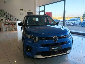 Contattaci al numero e fissa un appuntamento con i nostri consulenti commerciali! Optional: - Sedili posteriori monoblocco abbattibili, non indipendenti - Citroen head-up display - Chiusura centralizzata con pulsante di sicurezza e visualizzazione permanente delle porte chiuse - Calotte degli specchietti retrovisori esterni in tinta in massa - Rivestimento passaruota matt black - Rilevamento di gonfiaggio insufficiente - Pack safety - Spia cintura di sicurezza conducente e passeggeri - Barre al tetto in colore nero Lucido - Specchietto retrovisore laterale regolabile elettricamente con sbrinatore - 1 presa USB-C sul cruscotto + 2 prese USB-C nella seconda fila (ricarica rapida 3A) - Cerchi con copertura integrale azurite da 17" - Sedile posteriore abbattibile 2/3 - 1/3 - Alzacristalli elettrici anteriori con abbassamento automatico per il conducente e abbassamento automatico per il passeggero, alzacristalli posteriori manuali - ABS - Proiettori anteriori alogeni con firma luminosa a led - Maniglie esterne ed interne delle porte nero opaco - My Citroen drive con schermo centrale da 10" - Airbag laterali - Volante regolabile in altezza e profondità - Specchietti esterni elettrici - Airbag anteriori - ESP - 2 altoparlanti - 6 Airbag - Climatizzatore Manuale - Sedile di guida regolabile in altezza - Hill Assist - Servosterzo - Spoiler posteriore - Airbag a tendina - Sensori Di Parcheggio Posteriori - REF - AFU - Accensione automatica dei fari anabbaglianti - Volante in eco-pelle - Sospensioni Citroen advanced comfort - Tetto in onyx black - Clip lemon yellow