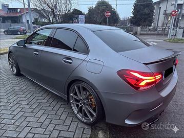 Ufficiale italiana Mercedes classe a220 w177 premium Amg 4matic 4x4 2.0 turbo benzina circa 258cv (a libretto 190cv no superbollo ) poche versioni Sedan - berlina assomiglia alla Cla ma più corta, messa così unica in Europa Quasi 15 mila di accessori extra praticamente auto pari al nuovo - 4 mila di wrap - PPF stesso colore della carrozzeria ma in opaco , -3800 euro scarico Supersprint con valvole (più originale) -3000 cerchi OZ leggera HLT 20” omologati a libretto tramite nad (lascio i suoi originali Amg 19 ) - 2.400 euro pinza Brembo 6 pompanti disco forato maggiorato 375 mm tubi in treccia aeronautici (più originale ) - 1500 euro diffusore 4 uscite 45s griglia amg 45s a35 distanziali (specchietti e spoiler tappo benzina in vera fibra di carbonio ) (più tutte le parti originali ) -1300 euro filtro diretto MST ,centralina e aggiornamento display strumenti amg 35 (Più originali ) tagliandata in Mercedes ufficiale 11-7-25 castelletto Ticino tutti tagliandi presenti e molte fatture dei lavori Presente doppie chiavi revisione appena fatta . NON SCAMBIO CON NULLA !!!!! ( Causa inutilizzo ho fatto circa 3500 km in un anno ) PRIMA DELLA CONSEGNA LA FACCIO TAGLIANDARE IN MERCEDES (anche se non e’ ancora il momento ) lascio tutti gli accessori per riportarla oroginale !!!!!!!PREZZO TRATTABILE NEI LIMITI !!!!!!!!
