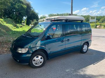 Vetri oscurati posteriori con pellicole anti uv omologate . Interni in pelle allestimento ambiente con frigo e tavolino posteriore 6 posti comodissimi . Maggiolina airlander small grigia montata su barre specifiche . Doppio treno di cerchi in lega da 15 e 16" con gomme estive e invernali entrambi i treni con pochi km , unico difetto sulla console centrale del cruscotto non vanno le chiusure centralizzate . Doppie chiavi .