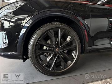 4 USB tipo C nella fila anteriore e 2 nella fila posteriore (fila posteriore solo per ricarica) - 7 airbag (2 frontali, 2 laterali, 2 tendina, 1 centrale) - ABS (Sistema di frenata antibloccaggio) - ACC Predittivo (Adaptive Cruise Control) - Alzacristalli elettrici anteriori - Alzacristalli elettrici con attivazione comfort e limitazione pressione massima di chiusura - Alzacristalli elettrici posteriori - Appoggiatesta posteriori (3 unità) - Attrezzi di bordo - Avvisatore acustico mancato allacciamento cintura di sicurezza - Battitacco anteriori illuminati - Braccialetto CUPRA in fibra di carbonio - Bracciolo anteriore e posteriore - CUPRA Virtual Cockpit 10,25" - Cambio automatico DSG a 7 rapporti - Cavo di ricarica MODE 2 - Cavo di ricarica mode 3 type2 - Cerchi in lega da 19" Artic Sport Black Matt - Cielo abitacolo nero - Cintura di sicurezza anteriori automatiche a tre punti - Cinture posteriori laterali automatiche a 3 punti - Climatronic tri-zona - Comando vocale - Concezione variabile del fondo vano di carico - Connectivity Box (Sistema di ricarica wireless per smartphone) - Cover chiave in fibra di carbonio - Cupra connect - DAB (Digital Audio Broadcasting) - Dashboard con design parametrico 3D e cuciture a contrasto in colore copper - Disattivazione airbag passeggero - Dispositivo Stop-Start con dispositivo di recupero - Drive Profile - Dynamic Design - ESP (Controllo elettronico della stabilità) - Freno di stazionamento elettrico - Front assist con sistema di frenata di emergenza e rilevamento pedoni e ciclisti - Front assist con sistema di frenata di emergenza e rilevamento pedoni e ciclisti - Full Link Wireless con Apple CarPlay e Android Auto - Funzione automatica coming & leaving home - Illuminazione ambientale Smart Wraparound - Illuminazione posteriore Full LED con logo illuminato incorporato nel gruppo ottico - Indicatori di direzione posteriori dinamici - Inserti decorativi in Tech Copper e Dark