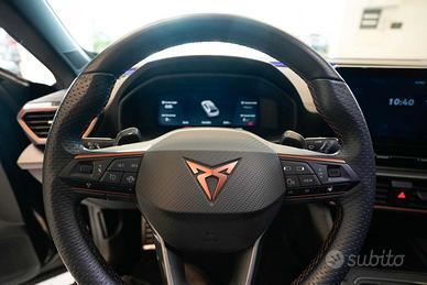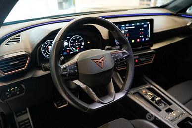 Battitacco anteriori illuminati, Illuminazione interna smart wraparound, Luci di lettura anteriori e posteriori (2+2), Regolazione in altezza e lombare dei sedili anteriori, Sedili sportivi CUPRA, Bracciolo centrale anteriore e posteriore, Cielo abitacolo nero, Volante Riscaldato, Climatronic 3 zone, Accesso Remoto, CUPRA Connect, Full Link, Volante sportivo multifunzione in pelle con leve del cambio integrate, Kessy entry + GO (sistema per l'accesso e l'avviamento senza chiave), Rifiniture interne in alluminio dark, Spoiler posteriore e paraurti sportivi, CUPRA Virtual Cockpit 10,25", Media system con display touch capacitivo da 10", Connectivity Box (Sistema di ricarica wireless per smartphone con funzione di amplificazione del segnale), DAB (Digital Audio Broadcasting), Cerchi in lega da 18" Silver, Presa elettrica 230 V, Mancorrenti al tetto e cornice finestrini laterali in colore nero lucido, Specchietti esterni in colore alluminio dark, Specchietti esterni richiudibili, riscaldabili e con funzione cordolo (lato passeggero), Fari Full LED con illuminazione COAST-to-COAST, welcome ceremony, funzione coming & leaving home e indicatori di direzione posteriori dinamici, Pneumatici 245/45 R18 96W, 1 Airbag centrale, 2 Airbag Frontali, 2 Airbag laterali, Veicolo disponibile presso l'azienda Ronconi Luigi & Figli Srl.