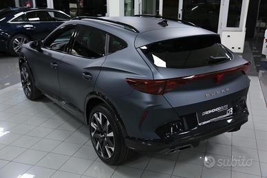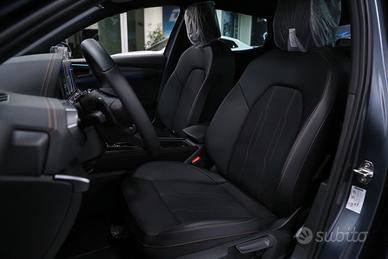 Lista optional: cambio automatico DSG, cerchi in lega da 19” machined SANDSTORM silver, rivestimento Sharp sedili sportivi in tessuto e inserti in similpelle, pacchetto EDGE, Intelligent Drive, sistema di infotainment con display touch da 12,9”, DAB, Cupra connect, Cupra virtual cockpit da 10,25”, full link wireless con Apple CArPlay e Android Auto, front assist con sistema di frenata di emergenza e rilevamento pedoni e ciclisti, ABS, XDS, freno di stazionamento elettrico, 4 USB tipo C, sistema per la chiamata d’emergenza e-Call, light assist (dispositivo di assistenza abbaglianti), sensori di parcheggio anteriori e posteriori (PDC), coming e leaving home, sistema di riconoscimento della stanchezza, sistema di controllo pressione pneumatici, base di ricarica wireless smartphone, keyless, avviamento tramite pulsante, riconoscimento segnali stradali, sensore luci e pioggia, ACC adaptive cruise control con limitatore di velocità, lane assist (mantenimento di corsia), inserti decorativi Tech Copper e Dark Aluminium, dashboard con design parametrico 3D e cuciture a contrasto in colore copper, cielo abitacolo nero, drive profile, ISOFIX, bracciolo anteriore e posteriore, pedaliera con inserti metallici, volante multifunzione riscaldabile racing in pelle con pulsanti di avviamento e di selezione della modalità di guida, sedili anteriori sportivi, regolazione lombare, illuminazione interna, battitacco anteriori illuminati, climatronic tri-zona, fari full LED anteriori con firma luminosa triangolare (include fari fendinebbia con funzione cornering), indicatori di direzione posteriori dinamici, vetri posteriori oscurati, specchietti esterni riscaldati e richiudibili elettricamente in colore Dark Aluminium, mancorrenti al tetto e cornice finestrini in colore nero lucido, paraurti sportivi, illuminazione posteriore Full Led con logo illuminato nel