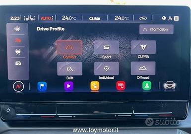 Convertitore di coppia "Torque Splitter" con modalità Drift - 7 airbag(2 frontali, 2 laterali, 2 tendina, 1 centrale) - Antifurto volumetrico - Avvisatore visuale ed acustico del mancato allacciamento cinture di sicurezza anteriori e posteriori - Badge identificativo VZ5 - Barre al tetto e cornice finestrini laterali in colore nero lucido - BeatsAudio Sound System - Braccialetto CUPRA in fibra di carbonio - Bracciolo centrale anteriore e posteriore - CUPRA Drive Profile - CUPRA Virtual Cockpit 10,25" - Cambio automatico DSG a 7 rapporti - Cerchi in lega da 20" Machined "VZ5" con finiture Sport Black Matt/Copper 255/30 R20 - Cielo abitacolo nero - Climatronic 3 zone - Connectivity Box - Controllo dinamico dell'assetto (DCC) - Cover chiave in fibra di carbonio - Cupra connect - DAB - Digital Audio Broadcasting - Disattivazione airbag passeggero - Estrattore posteriore con finiture in fibra di carbonio - Fari Full Led con illuminazione COAST to COAST, funz.coming & leaving home,ind. direz. post.dinamici - Fari Matrix LED - Fari fendinebbia - Freni Performance Akebono con pinze anteriori a 6 pistoni e disco anteriore da 375 mm - Front assist con sistema di frenata di emergenza e rilevamento pedoni e ciclisti - Full Link Wireless (funzione wireless disponibile con Apple CarPlay) - Griglia anteriore in tonalità Sport Black - Illuminazione interna smart wraparound - Kessy entry + GO (sistema per l'accesso e l'avviamento senza chiave) - Lane Assist (sistema di mantenimento della corsia) - Luci di lettura anteriori e posteriori (2+2) - Park Assist (include sensori di parcheggio anteriori e posteriori) - Passaruota in tonalità Sport Black - Pedaliera in allumi