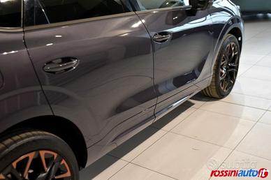 [Rif. 23504273] Telaio: VSSZZZKP9S1001803 Targa: GW902EY Piu grande della Formentor, la nuova Cupra Terramar è il SUV Ammiraglio della casa spagnola che si sviluppa in verticale con una qualità dei materiali al TOP rispetto le altre vetture Cupra. Come vuole però la tradizione Cupra il design della Terramar è estremizzato, molto dinamico, con interni Hi-Tech e tutto centrato sulle prestazioni e alla dinamicità di guida. Le novità però non finiscono qui, perché in un periodo di cambiamenti come questo anche la nuova Terramar Plug-In qui proposta, viene equipaggiata con il nuovo motore (di derivazione Volkswagen) 1.500 cc con tecnologia e-Hybrid che, associato al motore elettrico (integrato nel cambio) da 95 Cv ed al cambio automatico DSG a doppia frizione a 6 rapporti è capace di spremere al meglio questi 272 Cv (177 Termici e 95 elettrici *che non comportano maggiorazioni nel bollo) con consumi bassissimi e prestazioni di tutto rispetto. Rispetto alla precedente versione, non cambia solo il motore ma anche il modo di ricaricare il pacco batterie. Ora abbiamo a disposizione anche la ricarica Fast (che supporta 11 Kw/h) per una gestione piu rapida della ricarica ed anche le prestazioni sono migliorate, passando da 60 a 100 Km di autonomia in piena carica (Dati Volkswagen/Cupra) con un pacco batterie che mantiene gli stessi pesi e ingombri della precedente versione ma che passa ora a 19,7 Kw di capienza. Già molto ben equipaggiata di serie la vetture viene presentata in questa versione VZ con gli utili sensori di parcheggio anteriori e posteriori, fari a LED dinamici, sedili in pelle/Microfibra con Virtual Cockpit PRO, Radio Touch Screen da poco piu di 12? con Apple Car Play&Android Wireless, ricarcia wireless per smartphone, climatronic a 3 zone, DCC ? Dynamic Chassi Control, EDGE Pack e tanto altro ancora? Oltre alla già ricca dote di optional la vettura è stata personalizzata con ulteriori 8.175 EURO Di accessori e troviamo, oltre alla bella vernice