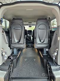 Allestimento:Veicolo unico nel suo genere allestito con un innovativo sistema di ribassamento INDEPENDENCE RE che garantisce spazi interni maggiorati e 4 confortevoli posti a sedere.Grazie alle ampie dimensioni dell'area carrozzina il passeggero può avanzare in seconda fila potendo contare su una larghezza fra i due sediliposteriori senza eguali (75 cm circa), in grado di ospitare passeggericon ogni genere di carrozzine, sia manuali che elettroniche. L'accesso al piano ribassato avviene tramite una rampa in alluminio servoassistita e rivestita in materiale antiscivolo, che grazie alla sua ridotta lunghezza non pregiudica la visuale posteriore.Il piano ribassato è stato progettato per aumentare l'altezza interna per i passeggeri in carrozzina, migliorarne la visuale e favorire l'interazione durante il viaggio. La sicurezza a bordo è garantita dalle dotazioni di serie del veicolo e dai sistemi di ritenuta, della carrozzina e dei suoi passeggeri, conformi alle norme ISO 10542.Il piano ribassato rivestito in materiale antiscivolo ed insonorizzante garantisce uno spazio massimo di 2250 mm in lunghezza, 770 mm in larghezza per una altezza di ingresso di 1570 mm ed interna di 1460 mm con una capacità di carico di 400 Kg.NOTE: