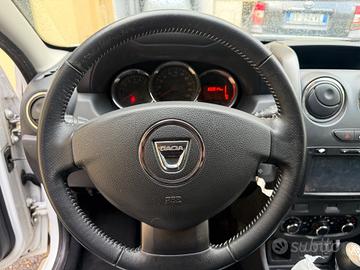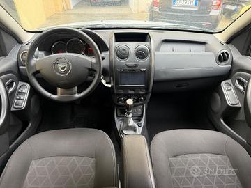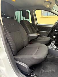 -Clima Manuale, Clima manuale (2), -Sedile conducente e volante regolabile in altezza, Sedile conducente/volante regolabile in altezza, -Volante in cuoio, Volante in cuoio, -Panchetta frazionabile 1/3-2/3, -Soglia Battitacco con scritta Duster, -Vetri anteriori manuali, Panchetta posteriore frazionabile 1/3 - 2/3, Vetri posteriori elettrici, -Kit gonfiaggio pneumatici, Kit di gonfiaggio degli pneumatici, -Soglia Portellone satinata, -Chiusura Centralizzata con telecomando, -Chiusura delle porte in movimento, Chiusura centralizzata con telecomando, -Dacia Plug&Radio (Radio CD MP3, presa Aux-In, USB e tecnologia Bluetooth). Comandi al volante., -Media Nav (navigatore, radio USB e Bluetooth), Media Nav con schermo toucscreen 7'', navigatore, radio, presa Aux-In, USB e tecnologia Bluetooth. Comandi al volante, -Computer di bordo con indicazione della temperatura, Computer di bordo (non disponibile sul GPL), -Cerchi in lega da 16'' Dark Metal, Cerchi in lega da 16'' Dark Metal, -EcoMode, EcoMode, -Paraurti bi colore grigio-tinta carrozzeria, Retrovisori esterni cromati, -Retrovisori elettrici, Retrovisori esterni elettrici, -Spoiler Posteriore, -Barre tetto nere, Barre tetto, Barre tetto bi-tono satinate, Carenature ant.- post. cromo satinate, Scarico cromato, Fari Fendinebbia, Fari Fendinebbia, -Luci Diurne, Carbone Scuro S.Armonie Interne, -Sellerie Ambiance, -Sellerie Laureate, -Pachetta posteriore a schema unico, -Pack Look, Pack Look, PACK MODULARITA', Pack SKI, -ABS con assistenza alla frenata d'emergenza, ABS + AFE, -Airbag conducente e passeggero disattivabile, Airbag frontale conducente e passeggero disattivabile, -Airbag laterali testa-torace, Airbag laterali testa-torace, -Servosterzo, Servosterzo, ESP, -Cruise Control, Cruise Control, Sensore pressione pneumatici, -Ganci isofix,