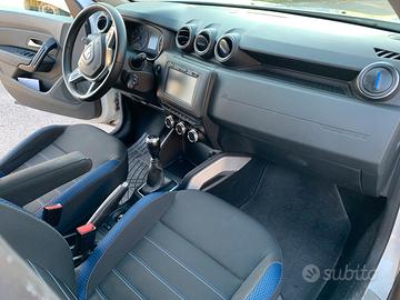 Vendo Dacia Duster gpl del giugno 2021. 170.000 km. Collettore con iniettori gas nuovi. Cinghia distribuzione e pompa acqua cambiate. Bianca, interni nero/bleu, allestimento 15th anniversario, super accessoriata, con 4 telecamere, sensori parcheggio posteriori, Media Nav Evolution