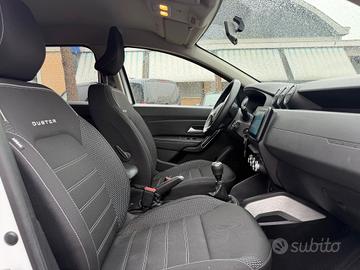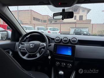 Dacia Duster 1.0 TCe Benzina / GPL 4x2 Prestige 101 CV 12/2021 km 117000 Colore bianco clima bizona volante in pelle multifunzione cambio manuale fendinebbia radio touch screen con Bluetooth, apple e Android car play, navigatore satelliatare, sensori posteriori di parcheggio, videocamera di parcheggio, cerchi in lega diamantati , fari a led, due prese usb sedili posteriori start and stop, modalità eco disponibile