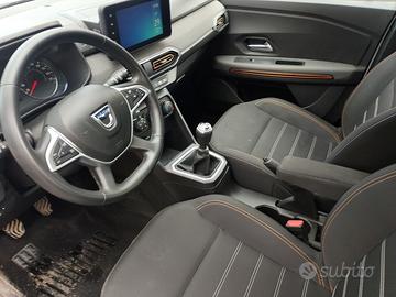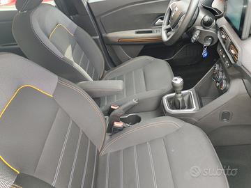 Clima manuale, Volante in TEP, Volante regolabile in altezza e profondità, Bracciolo conducente, Panchetta ribaltabile e frazionabile 1/3-2/3, Kit di riparazione pneumatici, Finiture interne arancioni e cromo satinate, Stripping laterale nero protezione portiere, Chiusura automatica porte con sensore di velocità, Chiusura centralizzata, Media Display (Schermo 8", prese AUX/ USB, Bluetooth e smartphone replication con cavo), Computer di bordo TFT 3.5", Cerchio da 16" FLEXWHEEL SARIA DARK, Porte USB, Presa 12V, Eco Mode, Maniglie portiere esterne in tinta carrozzeria, Paraurti in tinta carrozzeria, Specchietti retrovisori in tinta carrozzeria elettrici, Calandra con badge "Stepway", Barre tetto modulari grigio quarzo, Firma luminosa "Y-shape" a LED, Fari Fendinebbia cromati, Accensione automatica fari (ALS), Sellerie nere con impunture bianche e arancioni sullo schienale, sul poggiatesta e sulla seduta, scritta "Stepway" sullo schienale, ABS, Airbag frontali e laterali conducente e passeggero, ESC, Cruise Control, Sensore di pressione pneumatici, AFU, HSA, Ganci Isofix, AEBS, FCW, E-Call, Limitatore di velocità, Speed excess warning, Sensori Di Parcheggio Posteriori, Accensione tergicristalli automatica, Sensore accensione tergicristalli automatico, Alzacristalli anteriori elettrici, Alzacristalli posteriori elettrici,