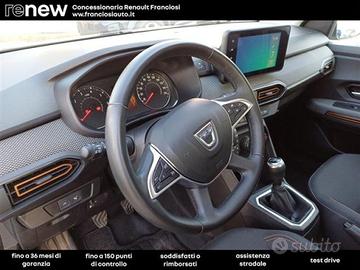 Altre opzioni: Accensione automatica fari (ALS);Accensione tergicristalli automatica;AEBS;AFU;Alzacristalli Posteriori Manuali;Alzacristallo anteriore impulsionale lato conducente;Barre tetto modulari grigio quarzo;Calandra con badge "Stepway";Cerchio da 16" FLEXWHEEL SARIA DARK;Chiusura automatica porte con sensore di velocità;Clima manuale;E-Call;Eco Mode;ESC;Estensione Dacia Service 7 Anni / 150.000 Km;FCW;Finiture interne arancioni e cromo satinate;Firma luminosa "Y-shape" a LED;HSA;Kit di riparazione pneumatici;Limitatore di velocità;Maniglie portiere esterne in tinta carrozzeria;Media Control;Panchetta ribaltabile e frazionabile 1/3-2/3;Paraurti in tinta carrozzeria;Sellerie nere con impunture bianche e arancioni sullo schienale, sul poggiatesta e sulla seduta, scr;Sensore accensione tergicristalli automatico;Specchietti retrovisori in tinta carrozzeria elettrici;Speed excess warning;Stripping laterale nero protezione portiere;Volante in TEP;Volante regolabile in altezza e profonditàNote concessionario: SEDE MODENAAEBS - AFU - Computer di bordo TFT 3.5" - Cruise Control - Eco Mode - ESC - FCW - HSA - Limitatore di velocità - Media Display (Schermo 8", prese AUX/ USB, Bluetooth e smartphone replication con cavo) - Sensori Di Parcheggio Posteriori - Speed excess warning -