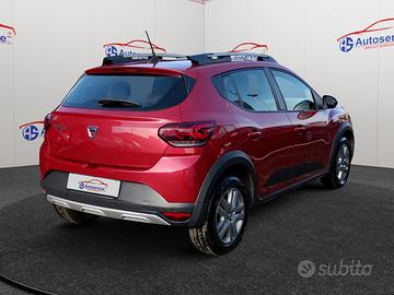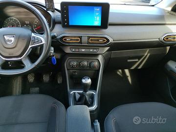 Clima manuale, Volante in TEP, Volante regolabile in altezza e profondità, Bracciolo conducente, Panchetta ribaltabile e frazionabile 1/3-2/3, Kit di riparazione pneumatici, Estensione Dacia Service 7 Anni / 150.000 Km, Finiture interne arancioni e cromo satinate, Stripping laterale nero protezione portiere, Chiusura automatica porte con sensore di velocità, Chiusura centralizzata, Media Control, Media Display (Schermo 8", prese AUX/ USB, Bluetooth e smartphone replication con cavo), Computer di bordo TFT 3.5", Cerchio da 16" FLEXWHEEL SARIA DARK, Porte USB, Presa 12V, Eco Mode, Maniglie portiere esterne in tinta carrozzeria, Paraurti in tinta carrozzeria, Specchietti retrovisori in tinta carrozzeria elettrici, Calandra con badge "Stepway", Barre tetto modulari grigio quarzo, Firma luminosa "Y-shape" a LED, Fari Fendinebbia cromati, Accensione automatica fari (ALS), Sellerie nere con impunture bianche e arancioni sullo schienale, sul poggiatesta e sulla seduta, scritta "Stepway" sullo schienale, ABS, Airbag frontali e laterali conducente e passeggero, ESC, Cruise Control, Sensore di pressione pneumatici, AFU, HSA, Ganci Isofix, AEBS, FCW, E-Call, Limitatore di velocità, Speed excess warning, Sensori Di Parcheggio Posteriori, Accensione tergicristalli automatica, Sensore accensione tergicristalli automatico, Alzacristalli anteriori elettrici,