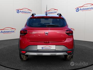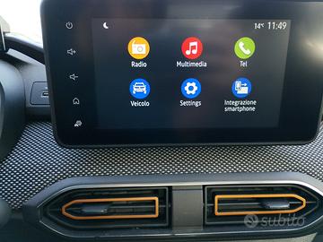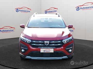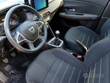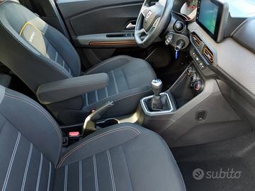 Clima manuale, Volante in TEP, Volante regolabile in altezza e profondità, Bracciolo conducente, Panchetta ribaltabile e frazionabile 1/3-2/3, Kit di riparazione pneumatici, Estensione Dacia Service 7 Anni / 150.000 Km, Finiture interne arancioni e cromo satinate, Stripping laterale nero protezione portiere, Chiusura automatica porte con sensore di velocità, Chiusura centralizzata, Media Control, Media Display (Schermo 8", prese AUX/ USB, Bluetooth e smartphone replication con cavo), Computer di bordo TFT 3.5", Cerchio da 16" FLEXWHEEL SARIA DARK, Porte USB, Presa 12V, Eco Mode, Maniglie portiere esterne in tinta carrozzeria, Paraurti in tinta carrozzeria, Specchietti retrovisori in tinta carrozzeria elettrici, Calandra con badge "Stepway", Barre tetto modulari grigio quarzo, Firma luminosa "Y-shape" a LED, Fari Fendinebbia cromati, Accensione automatica fari (ALS), Sellerie nere con impunture bianche e arancioni sullo schienale, sul poggiatesta e sulla seduta, scritta "Stepway" sullo schienale, ABS, Airbag frontali e laterali conducente e passeggero, ESC, Cruise Control, Sensore di pressione pneumatici, AFU, HSA, Ganci Isofix, AEBS, FCW, E-Call, Limitatore di velocità, Speed excess warning, Sensori Di Parcheggio Posteriori, Accensione tergicristalli automatica, Sensore accensione tergicristalli automatico, Alzacristalli anteriori elettrici,