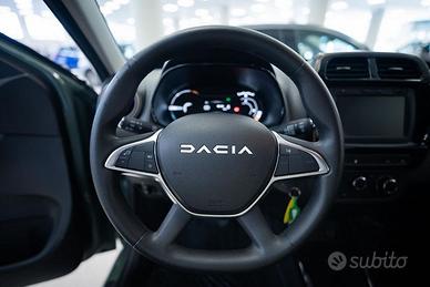 2 Airbag Laterali Anteriori - 2 Airbag laterali posteriori - ABS - AEBS - Airbag frontale conducente - Airbag frontale passeggero - Alzacristalli elettrici anteriori - Alzacristalli posteriori elettrici - BAS - Barre portatutto con inserti color rame - Batteria 26,8Kw - Caricabatterie AC/DC - Cavo di ricarica Modo 3/Tipo 2 (per colonnine e wallbox) - Cerchio da 14" FLEXWHEEL - Chiusura centralizzata - Chiusura delle porte automatica - Clima manuale - Computer di bordo con schermo TFT 3,5" distanza percorsa, autonomia informazioni sulla batteria - Copper pack - Decori interni color rame (bocchette aerazione, bordi schermo multimedia) - E-Call - EBD - ESP - Eco Mode - Kit riparazioni pneumatici - Limitatore di velocità - Luci diurne a LED - Luci posteriori con firma Dacia Y-Shape - Maniglie portiere interne nere - Nuova calandra che integra il nuovo emblema con inserti bianchi - Pack Navigation - Panchetta ribaltabile 11 - Presa 12V - Radio DAB Bluetooth & Usb - Retrovisori regolabili elettricamente - Sellerie in Tep con inserti color rame - Sensori di parcheggio posteriori con retrocamera - Servizi connessi dall'applicazione MY Dacia stato di carica, precondizionamento, geolocalizzazione, avvio e arresto della ricarica da App - Servosterzo Elettrico - Sistema di fissaggio Isofix del seggiolino per bambini per sedili posteriori