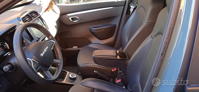 Interni in pelle, clima manuale, autoradio con Android/ Apple carplay, telecamera posteriore con sensori di parcheggio, cavo di ricarica rapida per la colonnine. Incluso anche un bracciolo originale Dacia montato tra il sedile conducente e Il sedile passeggero e un cavo di ricarica per la rete domestica entrambi comprati a parte.