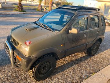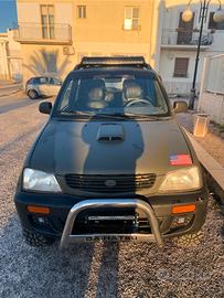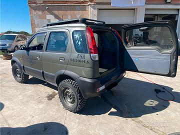 Terios anno 99’ 4x4 con bloccaggio differenziale, iscritto Asi, Lavori effettuati : motore 1.3 HC sostituito nel 2021 con uno completamente revisionato dal valore di 2000€, radiatore, pompa acqua originale, giunto viscoso, idroguida revisionata, tubi liquido refrigerante in silocone, termostato originale, cavo frizione originale, frizione e volano, marmitta, cambio revisionato,vernice Raptor antigraffio sia esterna che interna, barra led Osram, portapacchi e piastra sabbia, bullbar in acciaio, kit rialzo +5 cm, ammortizzatori L200 rinforzati, piastra para motore da 6 mm con logo, autoradio 2 din Kenwood, vetri posteriori oscurati. Cedo per passaggio ad auto piu grande. No affaristi