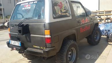 Vendo Feroza 1.6 cc benzina, anno 90, vettura 5 posti trentennale (esenzione bollo ed assicurazione agevolata), vetri elettrici, chiusura centralizzata, tettuccio anteriore e parte posteriore asportabile, rivernicicato da poco di colore grigio opaco, verricello anteriore, paraurti gravosi, snorkel, rialzato, gomme tassellate, preparato per Off Road estremo, in buono stato, € 5.900. Per maggiori informazioni contattatemi telefonicamente