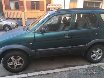 Terios 4X4 del 2002 in ottime condizioni meccaniche e di carrozzeria, ruggine assente, kit rialzo 30mm, gancio traino, climatizzatore, cerchi in lega 15", tagliando (olio, filtri, liquidi, candele accensione) effettuato, revisione fino a dicembre 2026, catena distribuzione e pompa fatta a 200.000 km, gommata recentemente 205/70R15, da sostituire manopola ventola e griglia aerazione.