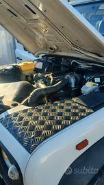Defender 90 -2.5 TD - 19J Autocarro 240000 Km Tenuta molto bene, tagliandi ufficiali Land Rover all'80% verificabili e certificati. Seguenti lavori già fatti: CIRCUITO FRENANTE: -Revisione pompa -Paraoli CIRCUITO DI RAFFREDDAMENTO: -Intercooler -Tubi in silicone MOTORE: -Revisione testata -Cambio guarnizioni -Iniettori -Frizione -Pompa a vuoto -Pompa gasolio -Revisione turbina CICLISTICA: -Giunto viscoso -Differenziale -Kit cuscinetti differenziale -Barra phanard -Boccole e mozzi ruote -Revisione semiassi -Ammortizzatori post -Motore avviamento CARROZZERIA: -Verniciatura componenti neri -Rivestimento legno parte posteriore -Impianto stereo DOTAZIONI: -2 panchette posteriori -Porta bici Thule illuminato e targato -Autoradio -2 casse posteriori nuove