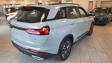 DOTAZIONI: ABS con EBD Controllo di stabilità, Sistema di telecamere a 360°Sistema di telecamere anteriori attivabileSistema di registrazione dati eventi (EDR)Sistema di assistenza partenza in salita (HAC)Controllo stabilità in discesa (HDC)Assistenza alla frenata, Freno di stazionamento elettrico Sensori di parcheggio panoramici, Sistema keyless per apertura porte start button •Chiave intelligente Cruise Control con segnalazione pericolo Dash Cam Modalità di guida ECO/NORMAL/SPORT Ricarica cellulare wireless Sistema di monitoraggio angoli ciechi (BSD) Assistenza al cambio di corsia, avviso acustico Avviso di collisione posteriore (RCW) Rilevatore di traffico (RCTA) Avviso apertura porte (DOW) Protezione collisione pedoni Sistema di spegnimento motore in caso di collisione Sedili in pelle Sedile di guida con sei regolazioni Ventilazione sedili, Climatizzatore automatico Schermo touch SD da 10,25” Bluetooth Android Auto/Apple CarPlay Navigatore GPS Cerchi in lega da 19" a 5 razze Regolazione elettrica specchietti Specchietti retrovisori esterni richiudibili Tetto panoramico elettrico