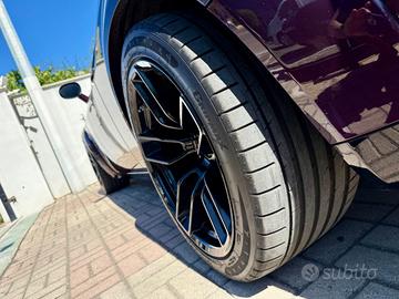 Optional: colore viola metallizzato (introvabile), kit allargamento Widebody, cerchi maggiorati misura 11x20 ET -25 con distanziali 25mm e gomme nuove misura 305/35/20, fari full-led, sensori parcheggio, retrocamera, interno pelle con sedili sportivi riscaldati e ventilati, volante in pelle multifunzione, schermo touch screen, bluetooth, usb, aux, Apple Car Play, sensore luci e pioggia, cruise control, climatizzatore automatico bizona