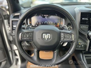 DEK:[10244823] RAM 1500 5.7L HEMI V8 eTORQUE REBEL G/T NETTO IVA - ALLESTIMENTO G/T - VIRTUAL COCKPIT - VOLANTE RISCALDABILE - PALETTE CAMBIO AL VOLANTE - CRUISE CONTROL ADATTIVO - INFOTAINMENT DIGITALE DA 12" CON APPLE CARPLAY E ANDROID AUTO WIRELESS - CAMBIO AUTOMATICO 8 RAPPORTI - BLOCCO DEL DIFFERENZIALE ASSE POSTERIORE - SOSPENSIONI PNEUMATICHE - SEDILI ANTERIORI RISCALDABILI - SEDILI ANTERIORI REGOLABILI ELETTRICAMENTE CON MEMORIA - IMPIANTO AUDIO HARMAN/KARDON - TELECAMERA 360° - DOPPIO TETTO PANORAMICO E APRIBILE - MULTI-FUNCTION TAILGATE - RAM BOX - DOPPIO SCARICO SPORTIVO - SISTEMA MILD-HYBRID eTORQUE PREZZO EURO 87.000 NETTO IVA - Autocarro - Box 5,7” – 170 cm - Motore 5.7L hemi VVT V8 con FuelSaver MDS Euro 6, 295 kw 401 cv a 5.600 giri - Cambio automatico 8 rapporti 8HP75 - DSH Blocco differenziale asse posteriore E-locker - DMH Differenziale posteriore 3.92 - Sistema di smorzamento oscillazione del rimorchio - Assistenza alla frenata - Assistenza alla partenza in salita - Ammortizzatori Heavy-Duty - Electronic Roll-Mitigation - Active noise control - Alternatore 220 v - Pneumatici fuoristrada LT275/70R18E OWL - Vetro di protezione solare a tinta profonda - Finestrino fisso posteriore - Inserto per specchietto esterno grandangolare convesso - Specchi esterni con elemento riscaldante - Specchietti esterni ripiegabili manualmente - Fari automatici - Fendinebbia anteriori a LED - Illuminazione vano piedi a LED - Fari con riflettore LED - Fanali posteriori a LED - Paraurti posteriore nero - Paraurti anteriore verniciato a polvere - Portellone ammortizzato - Cofano Performance - Cornici per proiettori nere - Parafanghi
