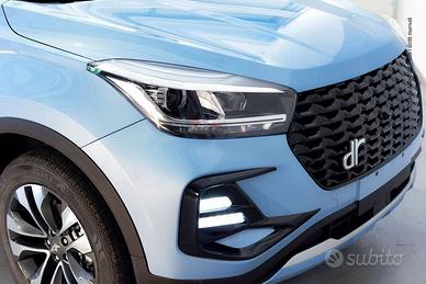 DR DR5, con il motore 1.5 Turbo a doppia alimentazione Benzina/GPL e cambio manuale. Immatricolazione maggio 2025, KM0. Colore Azzurro Metallizzato con interni in Pelle Totale Nera.