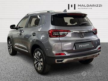 2 Airbag Lato Guida - 2 Airbag Lato Passeggero - 5 anni o 100.000 km di garanzia totale con copertura dei costi di ricambi e manodopera presso i centri di assistenza - ABS - Alzacristalli elettrici anteriori e posteriori - Apertura Keyless - Apple Carplay + Android Auto - Avviamento Keyless - Barre longitudinali sul tetto - Bracciolo anteriore - Bracciolo centrale posteriore con portabicchiere - Cerchi in lega da 18" con pneumatici 215/55 R18 - Climatizzatore - Cruise Control - Doppio fanale fendinebbia posteriore + luce retromarcia - EBD - ESP (BOSCH 9.3) - Fari anteriori a LED - Fari posteriori fumè - Follow Me Home - Hill Descent Control - Immobilizer - Antifurto - Indicatore cambio marcia (GSI) - Luci diurne, terzo stop a LED - Retrovisori Esterni Riscaldabili Con Funzione Auto-Fold - Retrovisori esterni regolabili elettricamente - Schermo LCD touch 12,3 pollici + 4 altoparlanti - Schienale posteriore abbattibile 60/40 - Sedile Lato Guida Regolabile Elettricamente In 6 Posizioni - Sedili In Ecopelle - Sensori Di Parcheggio Posteriori - Servosterzo elettrico (EPS) - Sistema Di Scarico Doppio - Smart Key - Specchietto Retrovisore Interno Antiriflesso - TPMS - Telecamera posteriore multi-angolo con linee guida dinamiche - Tergicristalli frameless anteriori/posteriori - Tetto apribile elettrico - Volante multifunzione in ecopelle