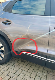 Piccolo danno di carrozzeria (come in foto) nella porta posteriore dove durante un parcheggio è stato colpito un paletto + qualche leggero bollo di grandine nel cofano .