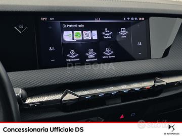2 prese USB anteriori, 2 Prese USB-C posteriori, 6 Airbags, ABS, Adaptive Cruise Control StopGo, Alzacristalli elettrici anteriori e posteriori, Ambient Lights, Apple CarPlay e AndoridAuto, Attacchi ISOFIX (sedile passeggero + 2 sedili posteriori), Black Pack Performance Line (DSWings ant/post), Bracciolo anteriore, Calandra Glossy Black, Cerchi in lega 19" Minneapolis, Comfort Access, Digital cockpit 7quot;, Driver Attention Assist, DS Air Climatizzatore automatico bizona con aeratori invisibili, DS E-Toggle, DS Extended Head-up Display, DS Matrix Led Vision, DS Navigation, DS IRIS, DS Smart Touch, DS Wings cromate, Emergency brake, ESP, Extended Traffic Sign Recognition, Fari posteriori 3D LED, Forward Collision Warning, Frenata di emergenza automatica, Freno di stazionamento elettronico, Hill Assist, Inserto paraurti posteriore Glossy Black, Interni in Alcantara Performance Line, Interni neri in Tessuto Peruzzi, Kit di riparazione pneumatici, Lane Keeping Assist, Maniglie esterne cromate a scomparsa, Parabrezza oscurato e acustico, Pedaliera in alluminio, Radio DAB+, REF, Retrovisore interno elettrocromatico, Retrovisori esterni richiudibili elettricamente, Rilevatore Bassa Pressione Pneumatici, Sedili posteriori frazionabili 2/3 - 1/3, Sensori di parcheggio anteriori, Sensori Di Parcheggio Posteriori, Sensori luci e pioggia, Servizi connessi, Shadow line esterna ai finestrini, Telecamera Di Retromarcia, Terminali di scarico cromati, Touchscreen 10quot;, Tunnel centrale chiuso, Vetri posteriori e lunotto oscurati, Volante in pelle multifunzione con paddles