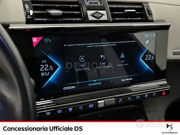 Vuoi sapere tutto su questo veicolo? Contattaci e comunicaci il CODICE VEICOLO: [Rif. U-Infinity01#527145-U] ALTRI OPTIONALS: 1 Presa 12V in fila 1 e Presa 12V nel bagagliaio, 6 Airbags, ABS, Accensione auto senza chiavi, Active Safety Brake fino a 140 km/h, Alzacristalli elettrici anteriori e posteriori, Antifurto, Apple CarPlay e Andorid Auto wireless, Attacchi ISOFIX (sedile passeggero + 2 sedili posteriori), Black Pack, Blind Spot Detection, Bracciolo anteriore, Bracciolo posteriore, Cerchi in lega 21quot; Brooklyn, Climatizzatore automatico bizona esteso, Comfort Access, Cruise Control, Digital Cockpit 12quot;, Driver Attention Alert, Driver Attention Warning, DS 360 Vision, DS Active scan suspension, DS Iris Touchscreen 12quot; e riconoscimento vocale, DS Navigation con servizi connessi e aggiornamenti OTA, DS Night Vision, DS Pixel led Vision, Easy Access portellone posteriore, Emergency brake, ESP, Filtro Antipolline e antiallergico, Freno di stazionamento elettronico, Hi-Fi System FOCAL Electra, Interni in pelle Nappa Basalt, Kit di riparazione pneumatici, Lane Departure Warning, Leva cambio in pelle, Parabrezza termico, Radio DAB+ con 1 presa Usb-C anteriore e Bluetooth, REF, Regolazione lombare (sedile conducente), Regolazione lunghezza seduta dei sedili anteriori, Retrovisore interno elettrocromatico, Retrovisori esterni richiudibili elettricamente, Rilevatore Bassa Pressione Pneumatici, Schienale sedili post regolabile elettricamente, Sedili anteriori regolabili elettricamente, Sedili anteriori ventilati con funzione massaggio, Sedili posteriori frazionabili 2/3 - 1/3, Sensori Di Parcheggio Anteriori E Posteriori, Sensori luci e pioggia, Tappetini anteriori e posteriori con battitacco in alluminio, Telecamera Di Retromarcia, Tetto panoramico aprile, Traffic Sign Recognition, Vetri posteriori oscurati, Volante in pelle multifunzione, Wireless charging Hai un’auto usata da rientrare? Scrivici marca, modello, allestimento, motorizzazione, km perco