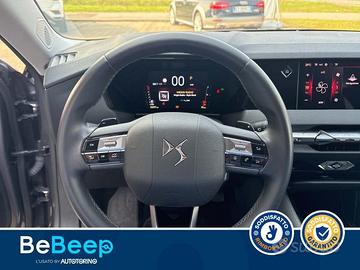 La vettura è completa nella dotazione optional di 2 Prese USB-C posteriori, 2 prese USB anteriori, 6 Airbags, Adaptive Cruise Control con funzione Stop&Go, Alzacristalli elettrici anteriori e posteriori, Ambient Lights, Apple CarPlay e AndoridAuto, Attacchi ISOFIX (sedile passeggero + 2 sedili posteriori), Barre al tetto Glossy Black, Bracciolo anteriore, Calandra Glossy Black, Cerchi in lega 19"" Lima, Chrome line esterna ai finestrini, Comfort Access, DS Air Climatizzatore automatico bizona con aeratori invisibili, DS Clean Cabin, DS E-Toggle, DS Extended Head-up Display, DS Matrix led vision, DS Navigation 3D con DS IRIS System e DS Smart Touch, DS Wings cromate, Digital cockpit 7"", Driver Attention Assist, ESP, Emergency brake, Extended Traffic Sign Recognition, Fari posteriori 3D LED, Forward Collision Warning,