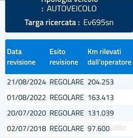Buonissimo stato Unico proprietario Km 223000 certificati (vedi cronologia revisioni) Garantita dodici mesi . Il tagliando completo con la sostituzione della distribuzione verra effettuato prima della consegna, qualora non venga da noi effettuato il prezzo della vettura è di euro 6500 non trattabili 3 4 7 6 9 0 3 7 5 8 Per maggiori informazioni e dettagli contattare il numero oppure