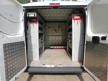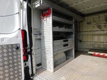 Allestimento tipo Officina Mobile, con Scaffalature interne e Portapacchi professionale al Tetto con doppio porta scale, Porta-tubi in Acciaio Inox, Slitta porta attrezzatura (compressore o altri accessori) .