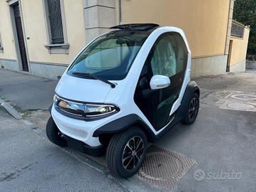 Quadriciclo leggero, si guida dai 14 anni con il patentino del ciclomotore (patente AM). 100% elettrica con autonomia di 100km per ricarica (3.5 ore per la ricarica completa).