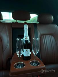 Il servizio include conducente professionale, massima puntualità e discrezione, e una bottiglia di spumante con due eleganti calici di vetro, per brindare ai momenti più speciali e per rendere il vostro giorno speciale ancora più indimenticabile.
