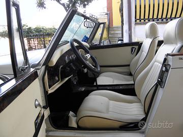 Livrea bicolore in buone condizioni, interni in pelle beige, cruscotto in legno, gomme con fascia bianca, marmitte laterali cromate.