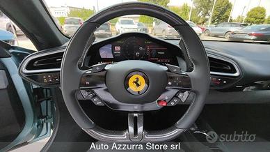 DEK:[10001832] Autoazzurra, dal 1984 offre la possibilità di consegna a domicilio dedicata con Truck di proprietà, Finanziamenti e Leasing, Noleggio, Assicurazioni, Assistenza Completa con vetture sostitutive, Lavaggio a mano con trattamento Pelle, Servizio fornitura e Stoccaggio gomme in sede. WWW.AUTOAZZURRA.IT Accessori: COMBINAZIONE COLORI: Vernice: Celeste metallizzato Pelle: Carbone Cuciture: Grigio Scuro Moquette: Carbone Pinze freno: Giallo Modena Contagiri: regolabile digitalmente EQUIPAGGIAMENTO OPZIONALE: ACPL Apple CarPlay AFS1 AFS (sistema di fari anteriori adattivi) AIRS Scaldacollo per il sedile anteriore BRAD Blind Spot Detection e Radar Posteriore CALY Pinze freno Giallo Modena CLDT Profili del sedile in pelle color Antracite CRPC Tappetini in Pelle e Alcantara CSB1 Cinture di sicurezza colorate in Grigio ELEV Sollevatore sospensione anteriore EMPH Cavallino rampante ricamato sui poggiatesta in Grigio Scuro HWCO Predisposizione "HW MYFERRARI CONNECT" LED Volante in fibra di carbonio con LEDs LOGO Scudetti "Scuderia Ferrari" sui parafanghi MIR3 Specchi retrovisori esterni elettrocromici PAC1 Telecamera di parcheggio posteriore PAR2 Sensori di parcheggio anteriori RSFD Cerchi sportivi da 20" con finitura diamantata RSFV Sedili ventilati completamente elettrici STC1 Cuciture standard in Grigio Scuro STYL Sedili "Style" TIWN Bulloni ruota in titanio WIRE Caricabatterie wireless per smartphone GARANZIA: L'auto ha una garanzia del produttore fino al 09/2026. La garanzia è estendibile fino all'età del veicolo di 15 anni nell'ambito del sistema di garanzia Ferrari Power (secondo le condizioni di garanzia del produttore). FERRARI MAINTENANCE PROGRAM: programma di manutenzione di 7 anni compreso fino al 09/2030 SERIE: Sicurezza: airbag frontali conducente e