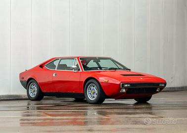 Stupenda Ferrari 308 GT4 originale (rarissima Prima Serie) prodotta in soli 764 unità per il solo anno 1974. Completamente ristrutturata nel 2024 sia nella meccanica che nella carrozzeria attenendosi strettamente ai canoni dell’originalità. Revisione e messa su strada a posto. È un gioiello che non ha bisogno di presentazioni: rappresenta una pietra miliare nella storia della Ferrari per la notevole quantità di novità introdotte a quell’epoca. Raffinata la meccanica, a partire dal nuovo motore V8 di 2927 cm³ con distribuzione bialbero su ogni bancata che, grazie all'alimentazione a 4 carburatori a doppio corpo a motore posteriore centrale che originariamente erogava 255 CV SAE poi, in seguito indicati come DIN con il valore di 230 CV. La prima ad avere il comando degli organi della distribuzione comandato da cinghie dentate in gomma. Il telaio con traliccio centrale era di impostazione sportiva, le sospensioni a ruote indipendenti con triangoli sovrapposti e i freni con 4 dischi autoventilati. Il cambio era manuale a 5 rapporti con differenziale autobloccante. Disegno della carrozzeria porta la firma di Bertone. Esemplari prodotti in totale 2.826 unità (fonte: Ferrari SpA): 1974: 764 unità 1975: 598 unità 1976: 439 unità 1977: 320 unità 1978: 267 unità 1979: 326 unità 1980: 112 unità Caratteristiche tecniche: Lunghezza: 4,30 mt Larghezza: 1,79mt Altezza: 1,18mt Passo: 255cm Massa: 115kg Cilindra: 3000 Potenza: 250CV (SAE) o 230CV (DIN) No perditempo