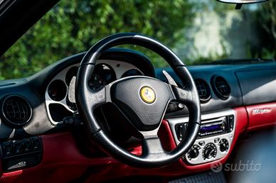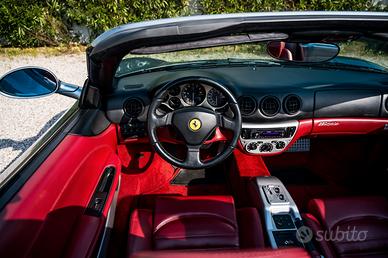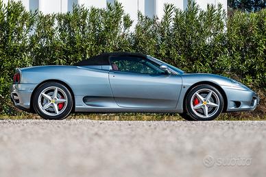 Ferrari 360 Spider F1, auto in eccellenti condizioni. ColoreGrigio Titanio con interni in pelle bordeaux. Impianto scarico Tubistyleacciaio inox. Versione Spider con tetto nero in tela ripiegabile elettricamente. Cambio F1. Sempre tagliandata presso concessionari ufficiali Ferrari. Ultimotagliando presso “ Sauro – Gruppo Ineco” 8 febbraio 2024 a km 61386, consostituzione delle cinghie di distribuzione. Pronta per visione e prova pressola nostra sede